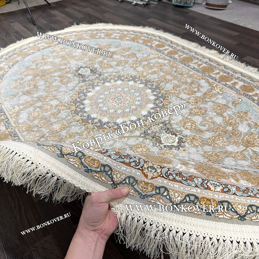 Иранский Овальный Ковер Для Гостиной Арт 30246 станет привлекательным дополнением интерьера, оформленного в современном или классическом стиле. Мягкое, но прочное, ковровое изделие обеспечивает тепло- и шумоизоляцию, отличается длительным сроком эксплуатации, надежностью, экологичностью и высокой износостойкостью, является отличной гарантией от повышенной влажности в комнате и утеплителем для холодного пола. Благодаря качеству материалов, ковер не деформируется, сохраняет первоначальный вид под тяжестью предметов мебели. За его поверхностью легко ухаживать.
