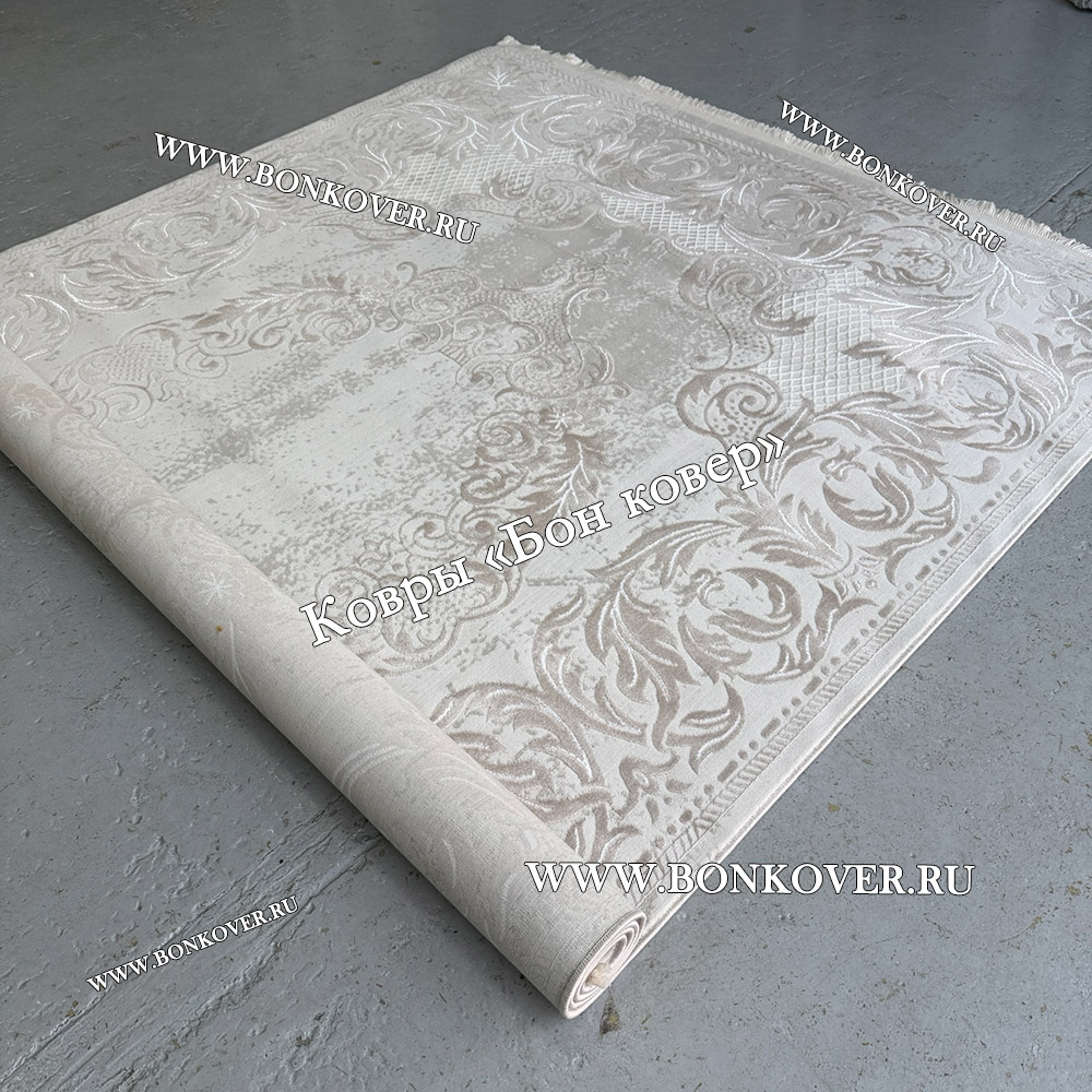 Невероятной красоты ковер, действительно с белым оттенком, как будто седым налетом. Очень интересный замысловатый рисунок, просматриваются бежевые и серо-бежевые тона, просто украшение комнаты!) Огромное спасибо замечательной компании Бон Ковёр! Самая крутая компания☺️