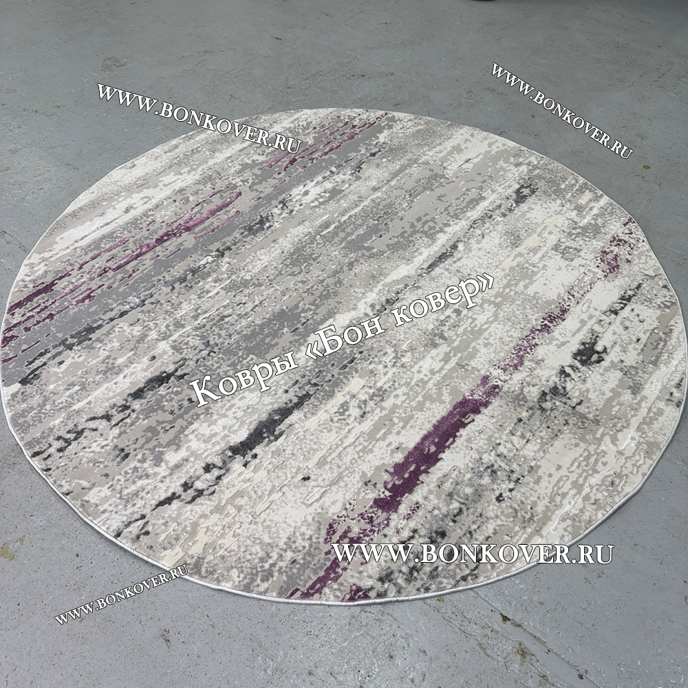 Красивый Круглый Ковер Для Гостиной Сиреневый С Серым Дизайн 30451 наполняет интерьер вашего дома теплом и уютом, гармонично сочетает в себе изящество и стиль. Он соткан из высококачественных материалов, прочный и долговечный.